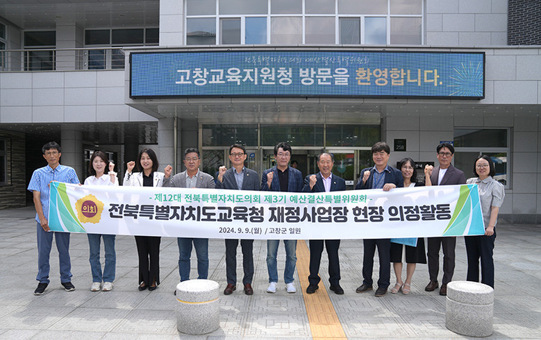 [전북특별자치도의회=세계타임즈 이상호 기자] 전북특별자치도의회 예산결산특별위원회(위원장 김성수, 고창1)는 9일, 2025년도 예산안 등 심사를 대비하여 전북특별자치도와 도교육청 재정사업 현장을 방문하고, 예산심사 기법에 대한 연수를 실시했다.