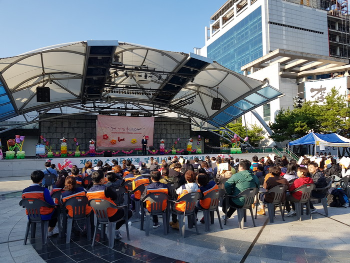박두현 회장, 유희자 이사, 김창래 감사를 비롯한 회원 30명은 단팥빵, 소보로, 사과빵을 600개를 만들어서 농아인들에게 2개씩 전달하였다. 또한 식전행사에는 도레미봉사예술단(단장 안경헌)의 난타공연과 행사장 안내봉사로 제3회수어문화제를 함께 하였다.
