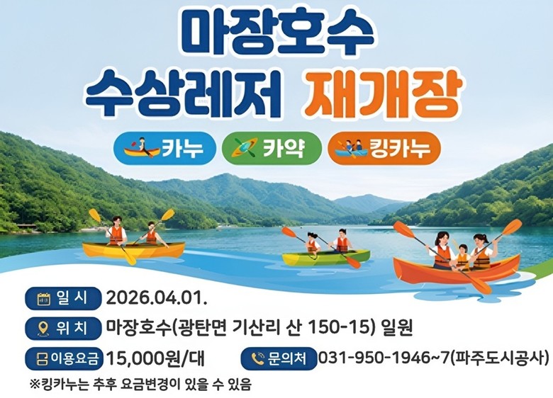 기존 카누 10대와 카약 4대로 운영되던 마장호수의 카누·카약 체험 프로그램은 무장애 관광 확대를 위해 다인승 ‘킹카누’ 2대를 새로 도입했다. 가족 단위 방문객과 노약자, 이동 약자 등 누구나 함께 수상 체험을 즐길 수 있도록 체험 선택의 폭을 넓히고 더욱 포용적인 관광 환경을 조성했다.