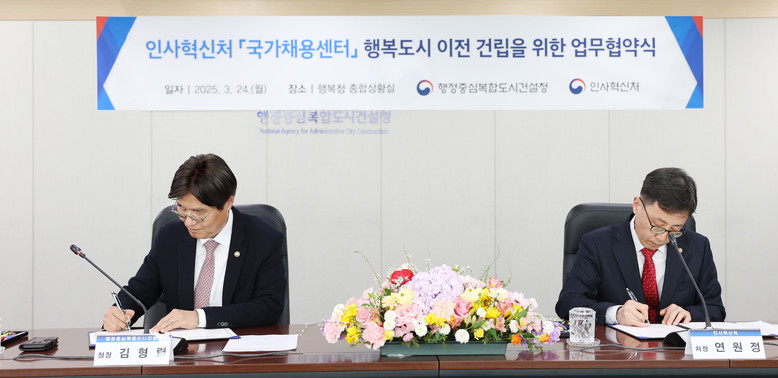 [세종 세계타임즈 = 이채봉 기자] 행복청과 인사혁신처는 이날 행복도시 내 ‘국가채용센터(가칭)’ 건립을 위한 업무협약을 체결했다.