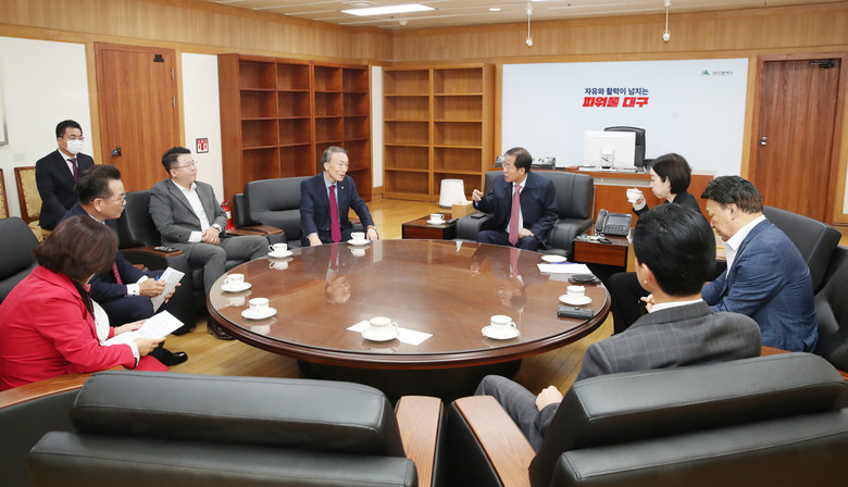 [대구 세계타임즈=한성국 기자] 대구광역시의회 통합신공항 건설 특별위원회(이하 ‘특위’, 위원장 박소영 의원)는 11. 7.(월) 동인청사에서 홍준표 대구시장과 간담회를 가지고 통합신공항 건설 사업의 추진상황 및 주요 현안에 대한 정보를 공유했다.