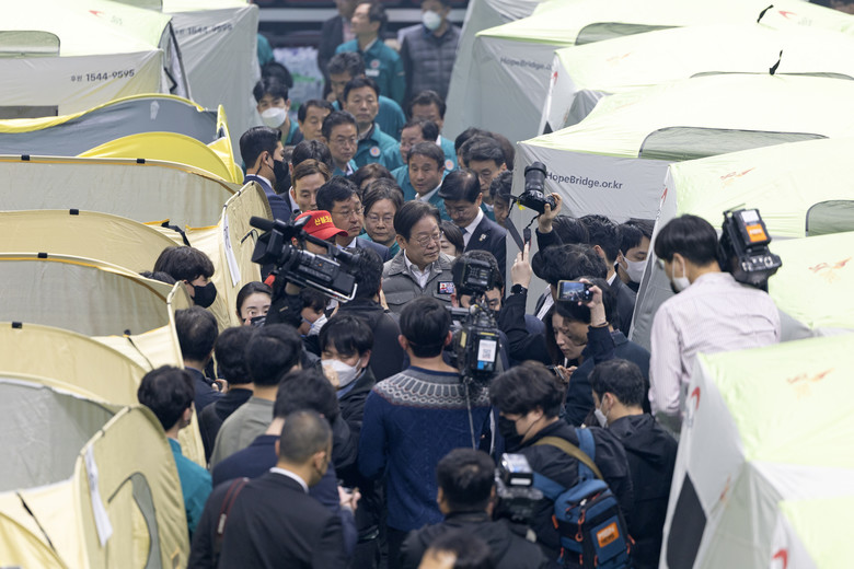 [세계타임즈 = 심귀영 기자] 더불어민주당 이재명 대표가 26일 오후 경북 안동시 안동체육관에 마련된 산불 대피시설을 찾아 시설을 살피고 있다. 이 대표는 이날 공직선거법위반 혐의 항소심 무죄 선고 후 첫 일정으로 이곳을 찾았다. 2025.3.26 [공동취재]