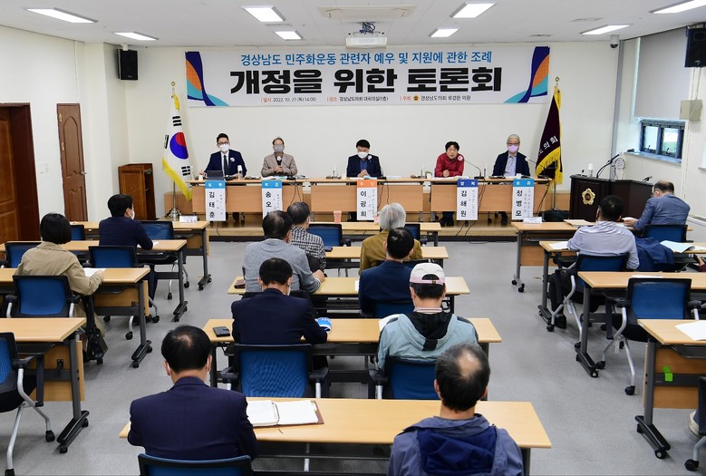 [경남 세계타임즈=최성룡 기자] 류경완 경남도의원(민주당, 남해)은 27일 도의회 대회의실에서 ‘경상남도 민주화운동 관련자 예우 및 지원에 관한 조례 개정을 위한 토론회’를 개최했다.