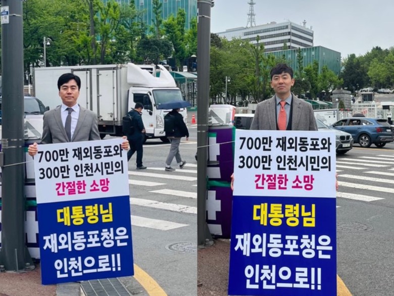 지난달 외교부 직원의 ‘재외동포청 유치는 서울이 적절하다’는 발언이 나오는 등 재외동포청 인천 유치의 어려움을 타개하고자 인천시의회에서는 300만 인천시민의 염원을 담아 정부의 재외동포청 유치 지역 발표가 나올 때까지 매주 평일 오전 7~9시까지 1인 시위를 이어갈 예정이다.