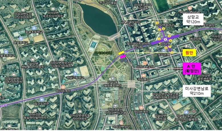 시는 이번 주민설명회를 통해 공사가 어려운 지하철 5호선 구간이 포함된 원안을 제외하고 주민들의 선호도가 높은 미사문화거리-장미정원을 잇는 구간을 사업 대상지로 확정했으며, 향후 관련 행정절차를 신속히 이행해 2027년 상반기 준공을 목표로 사업을 추진할 계획이다.
