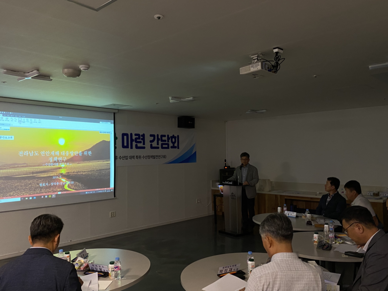 첫 번째 주제는 ‘전남도 연안재해 대응 방안 마련’으로 기후변화 등에 인한 해수온 상승으로 자연재해에 취약한 연안지역 도민들의 안전한 생활을 도모하기 위하여 변화되는 연안 환경을 살피고 대응 방안을 모색했다.