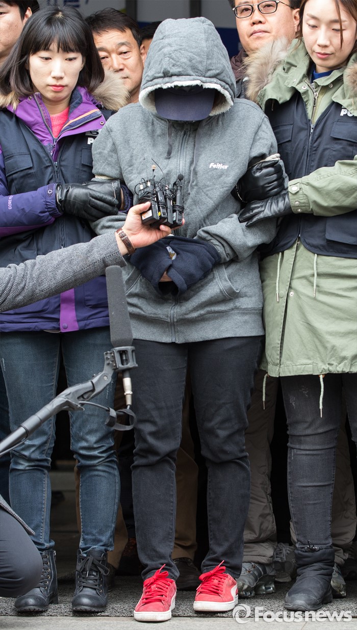 (부천=포커스뉴스) 부천 초등생 토막사건의 피의자 한모 씨가 사체손괴·유기와 아동보호법 위반 혐의로 22일 오후 경기 부천시 원미경찰서에서 검찰로 송치되고 있다.