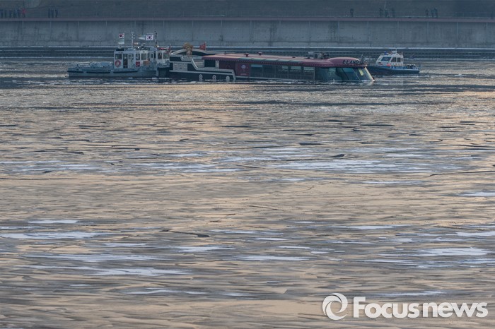 (서울=포커스뉴스) 26일 오후 서울 한강 영동대교 인근을 지나던 한강유람선이 침수, 구조대원들이 구조활동과 견인 작업을 하고 있다.