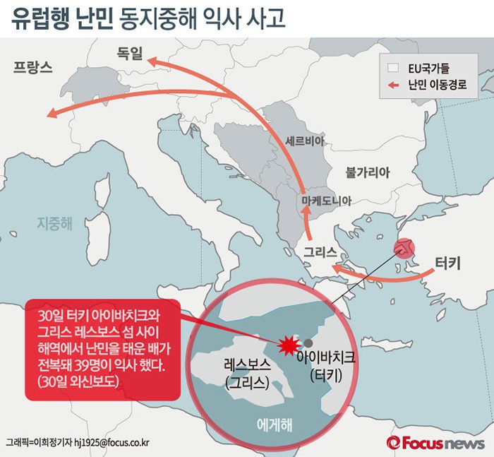 외신에 따르면 30일 아침 터키와 그리스 사이 해역에서 배가 전복돼 익사한 최소 39명을 포함해 이달 들어 에게해 횡단을 시도하다 250명 이상이 숨졌다.