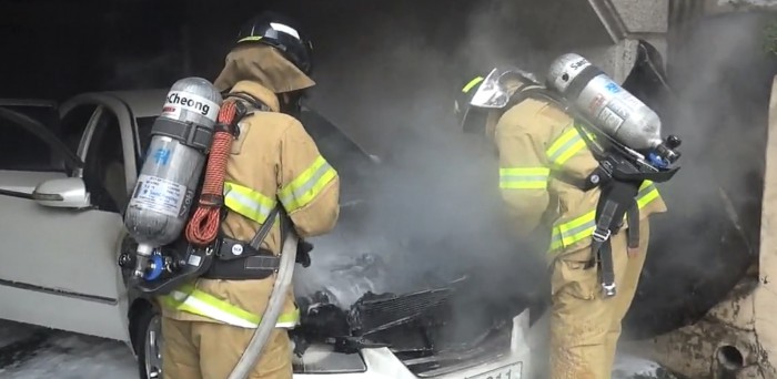 이날 화재는 차량 엔진룸 부근에서 연기와 화염이 이는 것을 본 한 시민이 119에 신고하면서 알려졌다.