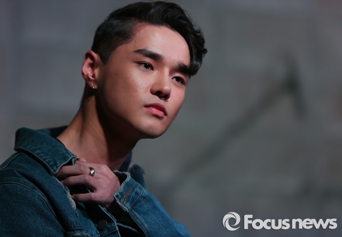(서울=포커스뉴스) 23일 오후 서울 강남구 JBK 컨벤션홀에서 가수 딘이 첫번째 정규앨범 [130 mood : TRBL] 발표 기자간담회에 참석해 취재진에게 질문을 듣고 있다.