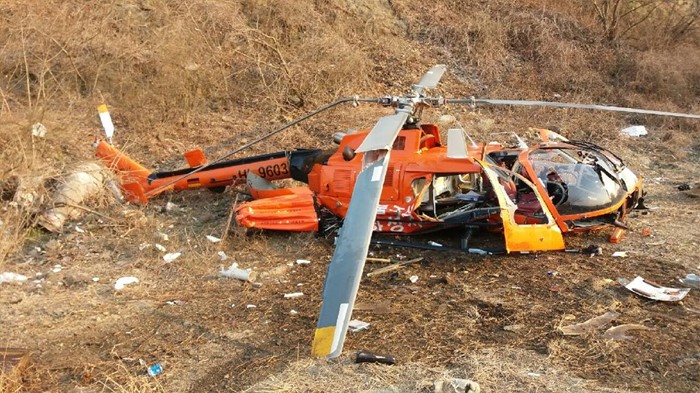 추락한 헬기는 독일에서 생산한 BO-105S 기종으로,화성시는 최근 산불 진화용 등에 사용하기 위해 이 헬기를 임차했다. <사진제공=경기소방재난본부>