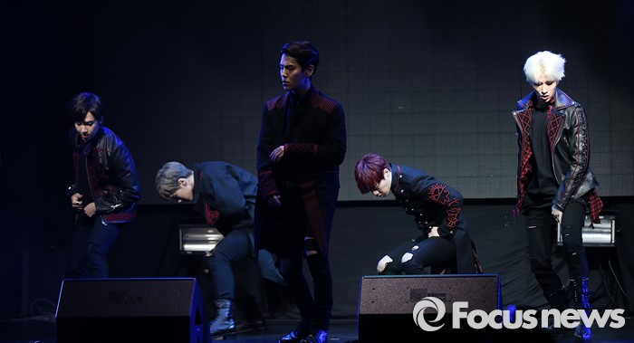 (서울=포커스뉴스) 30일 오후 서울 마포구 예스24 무브홀에서 열린 아이돌그룹 소년공화국의 세번째 미니앨범 [BR: evolution] 발표 쇼케이스에 참석한 멤버들이 'Get Down'무대를 선보이고 있다.