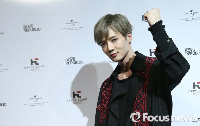 (서울=포커스뉴스) 30일 오후 서울 마포구 예스24 무브홀에서 열린 아이돌그룹 소년공화국의 세번째 미니앨범 [BR: evolution] 발표 쇼케이스에 참석한 멤버 선우가 포토타임을 갖고 있다.