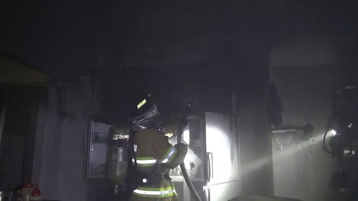 소방당국은 불이 주방 냉장고 근처에서 시작됐다고 보고 정확한 화재 원인을 조사 중이다.1일 오후 서울 성북구 정릉동의 중국음식점 주방에서 불이 났다. <사진제공=서울 성북소방서>