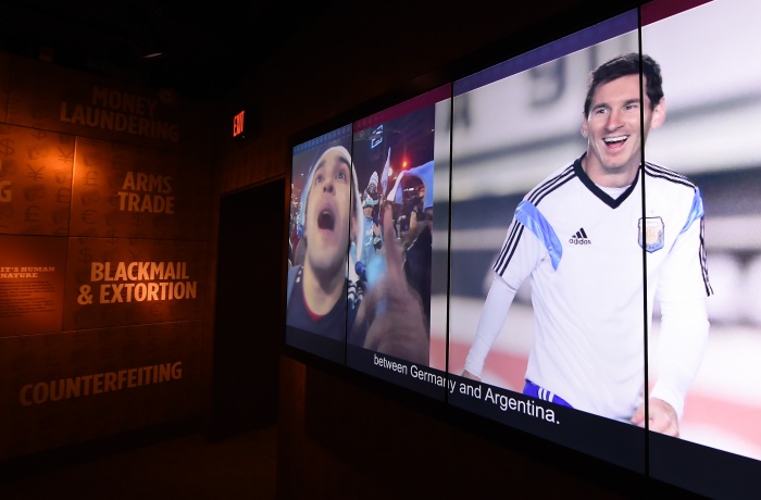 이번에 공개된 파나마 문서는 독일 일간 쥐트도이체 차이퉁이 참여한 국제탐사보도언론인협회(ICIJ)를 비롯해 전 세계 78개국 370여 명의 기자들이 협력해 1년에 걸쳐 조사한 결과다. 보고서는 주로 돈 많은 유력인사들의 업무를 돕는 것으로 알려진 파나마 소재 로펌 '모색 폰세카'(Mossack Fonseca)로부터 1100만 건 이상의 기록을 조사했다고 밝혔다.지난해 9월 미국 라스베이거스의 갱스터 박물관인 '몹 뮤지엄'(Mob Museum) 내 'FIFA 뇌물부패 스캔들' 전시관에서 비디오를 통해 2014년 월드컵 당시 리오넬 메시와 그의 팬의 모습이 나오고 있다 (Photo by Ethan Miller/Getty Images) 2016.04.04 ⓒ게티이미지/이매진스