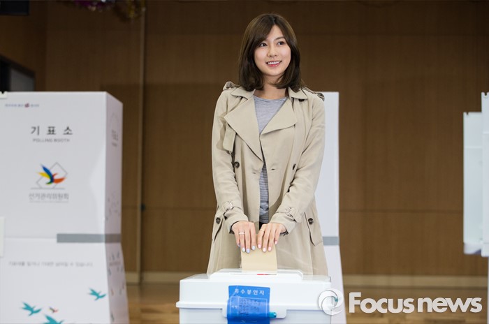 (서울=포커스뉴스) 에이핑크 오하영이 8일 오전 서울 마포구 서교동 주민센터에서 제 20대 총선 사전 투표를 하고 있다.