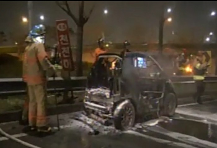 (서울=포커스뉴스) 8일 오후 7시 37분쯤 서울 마포구 마포대교 북단에서 강변북로 방향으로 달리던 벤츠 스마트 차량(반자동 운전 승용차)에서 불이 나 약 20분 만에 꺼졌다.