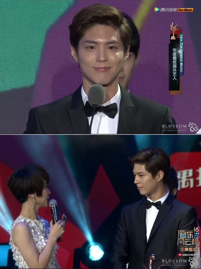 박보검 소속사 블러썸엔터테인먼트는 10일 "박보검이 제16회 음악풍운방연도 시상식에 참석해 '해외 최고 베스트 아티스트상'을 받았다"고 밝혔다.