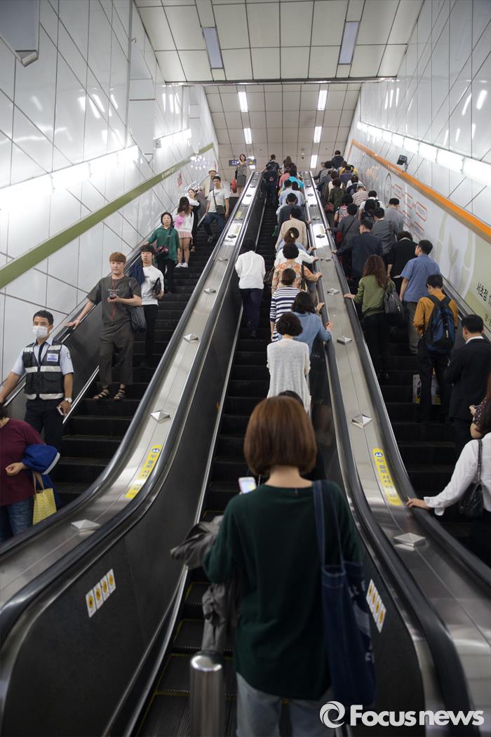 ID @and*****는 "분당선 고장이라 8호선을 탔다"며 "복정에서 사람들이 분당선 환승하려고 내리는데 안내방송 정도는 해줘야 아닌가"라며 불만을 표시했다. ID @i0****는 "분당선 맨날 고장이냐"며 "지각하고 힘들다"고 푸념했다.서울 신반포로 고속터미널역을 이용하는 시민들이 에스컬레이터를 이용하고 있다. 2015.09.21 김유근 기자