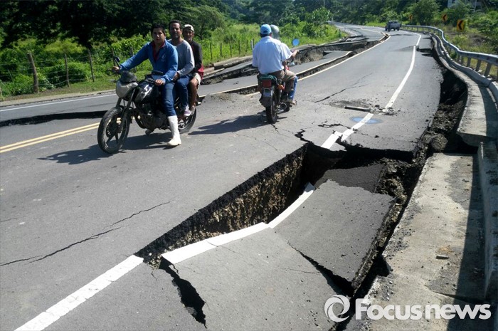 △ 에콰도르 강진, 갈라진 도로