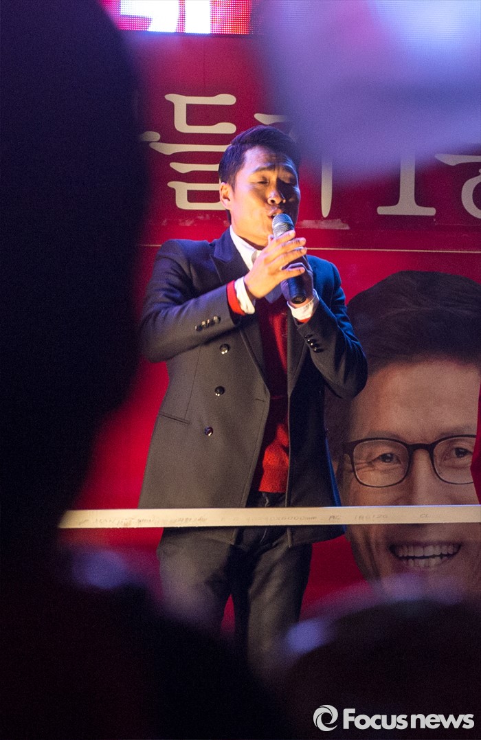 (서울=포커스뉴스) 개그맨 이창명이 빗길 교통사고를 낸 뒤 사고 처리를 매니저에게 맡기고 잠적해 '음주운전' 의혹을 받고 있다. 사진은 지난 12일 대구 수성구 신매광장에서 당시 김문수 새누리당 대구 수성구갑 후보 지원유세 하고 있는 개그맨 이창명.