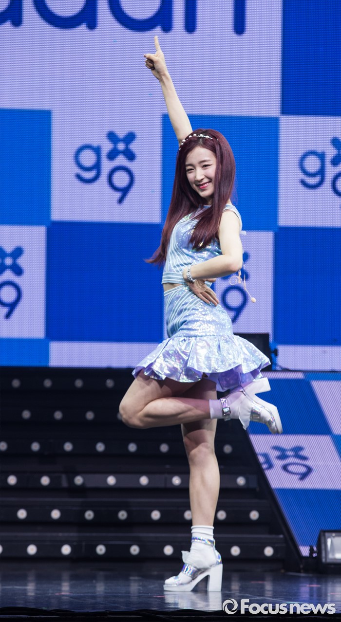 (서울=포커스뉴스) 28일 오후 서울 광진구 예스24 라이브홀에서 열린 걸그룹 구구단의 데뷔 쇼케이스에 참여한 멤버 하나가 포토타임을 갖고 있다.
