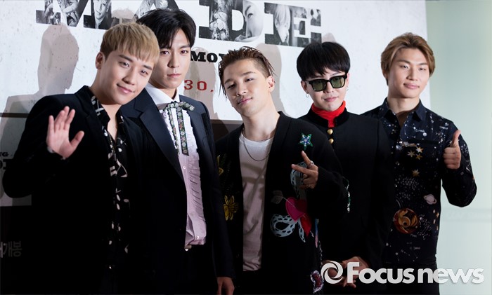 (서울=포커스뉴스) 28일 오후 서울 CGV 영등포점에서 영화 '빅뱅 메이드' VIP 시사회에 참석한 빅뱅이 포즈를 취하고 있다.