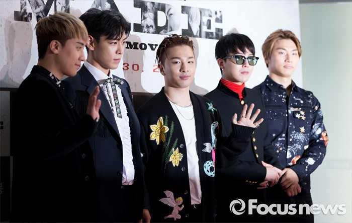(서울=포커스뉴스) 28일 오후 서울 CGV 영등포점에서 영화 '빅뱅 메이드' VIP 시사회에 참석한 빅뱅이 포즈를 취하고 있다.