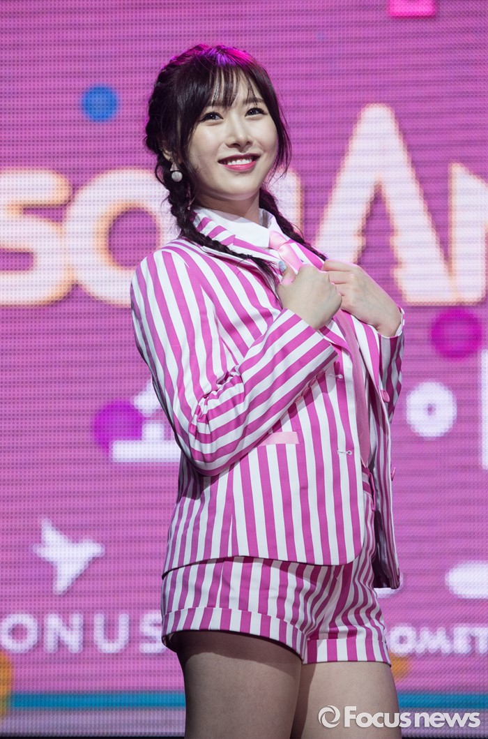 (서울=포커스뉴스) 29일 오전 서울 마포구 예스24 무브홀에서 열린 걸그룹 소나무의 미니앨범 '넘나 좋은 것' 쇼케이스에 참여한 멤버 의진이 포토타임을 갖고 있다.