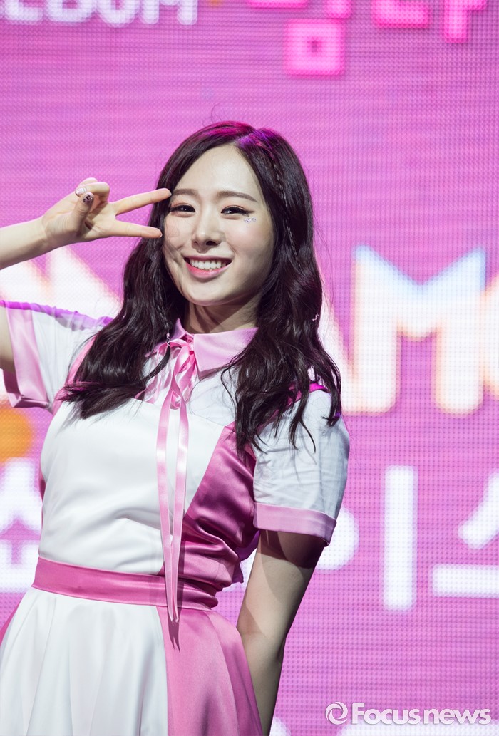 (서울=포커스뉴스) 29일 오전 서울 마포구 예스24 무브홀에서 열린 걸그룹 소나무의 미니앨범 '넘나 좋은 것' 쇼케이스에 참여한 멤버 민재가 포토타임을 갖고 있다.