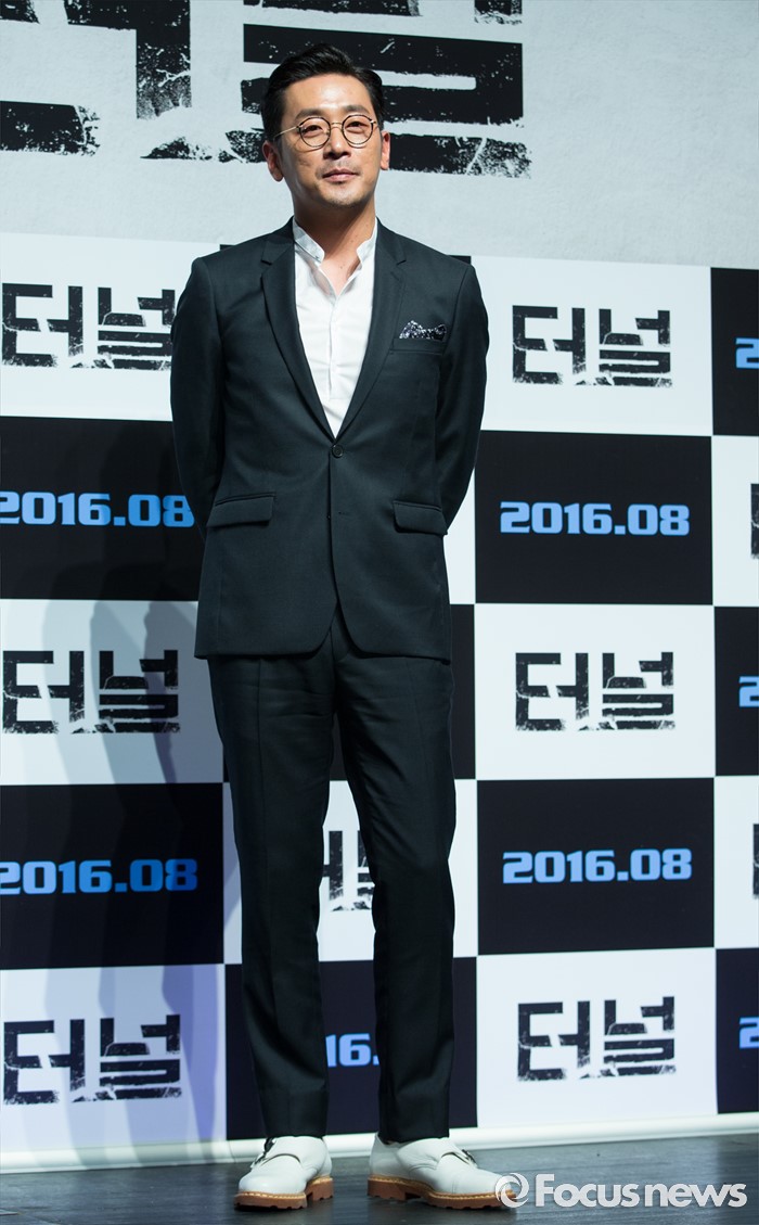 (서울=포커스뉴스) 7일 오전 서울 강남구 압구정 CGV에서 열린 영화 '터널' 제작보고회에 참석한 배우 하정우가 포토타임을 갖고 있다.