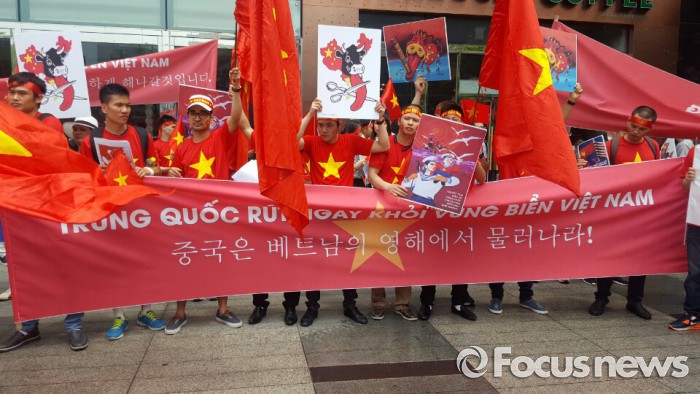 '주한베트남교민회'는 24일 주한 중국 대사관 인근인 서울 중구 충무로 서울중앙우체국앞에서 집회를 열고 "중국은 남중국해 군사 행동을 멈춰야한다"고 주장했다.