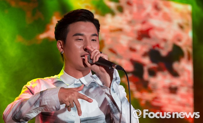 (서울=포커스뉴스) '쇼미더머니4' 우승자 래퍼 베이식이 1일 오후 서울 용산구 현대카드 언더스테이지에서 열린 첫 번째 미니앨범 'Nice' 발매 기념 쇼케이스에 참석해 화려한 무대를 선보이고 있다.