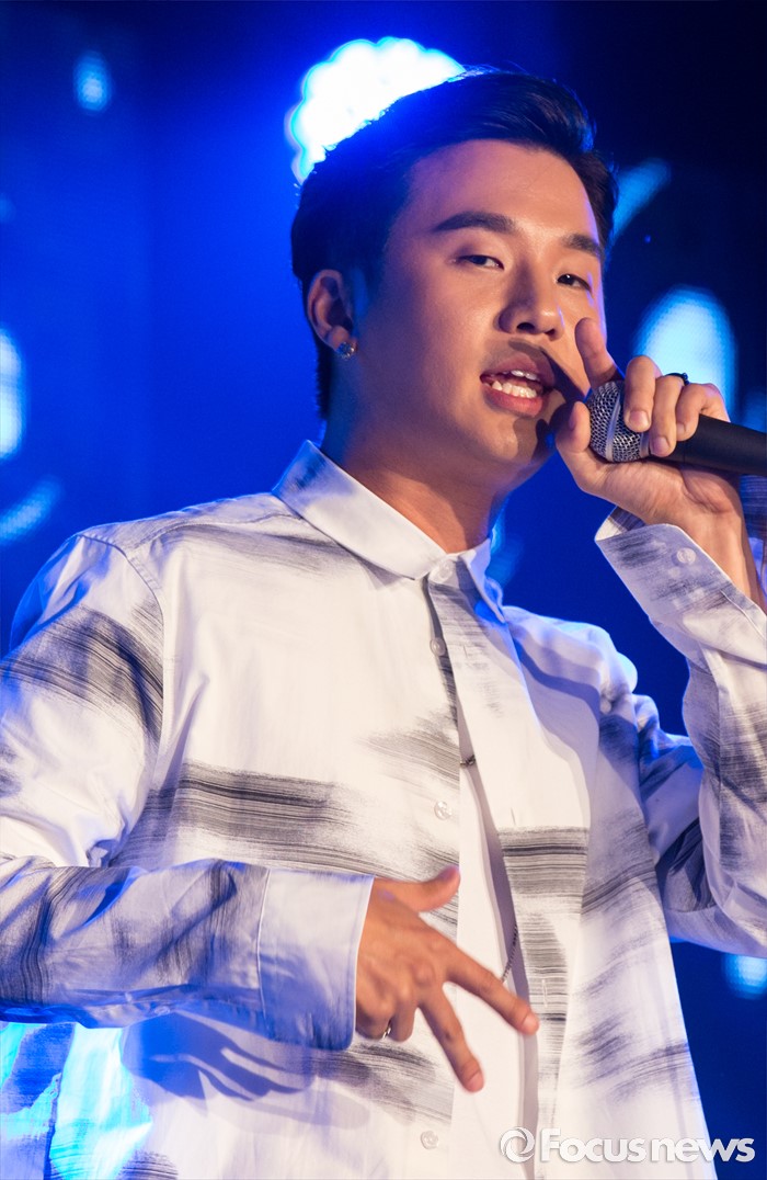 (서울=포커스뉴스) '쇼미더머니4' 우승자 래퍼 베이식이 1일 오후 서울 용산구 현대카드 언더스테이지에서 열린 첫 번째 미니앨범 'Nice' 발매 기념 쇼케이스에 참석해 화려한 무대를 선보이고 있다.