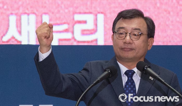(서울=포커스뉴스) 9일 오후 서울 송파구 잠실실내체육관에서 열린 새누리당 4차 전당대회에서 당대표로 선출된 이정현 의원이 수락연설을 하고 있다.
