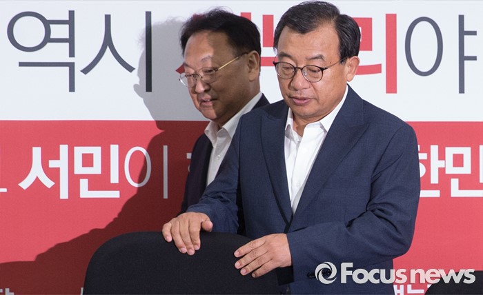 (서울=포커스뉴스) 11일 오후 서울 여의도 국회에서 열린 전기세 누진제 개편 긴급 당정 협의에 이정현(오른쪽) 새누리당 대표, 유일호 경제부총리 겸 기획재정부 장관이 참석하고 있다.